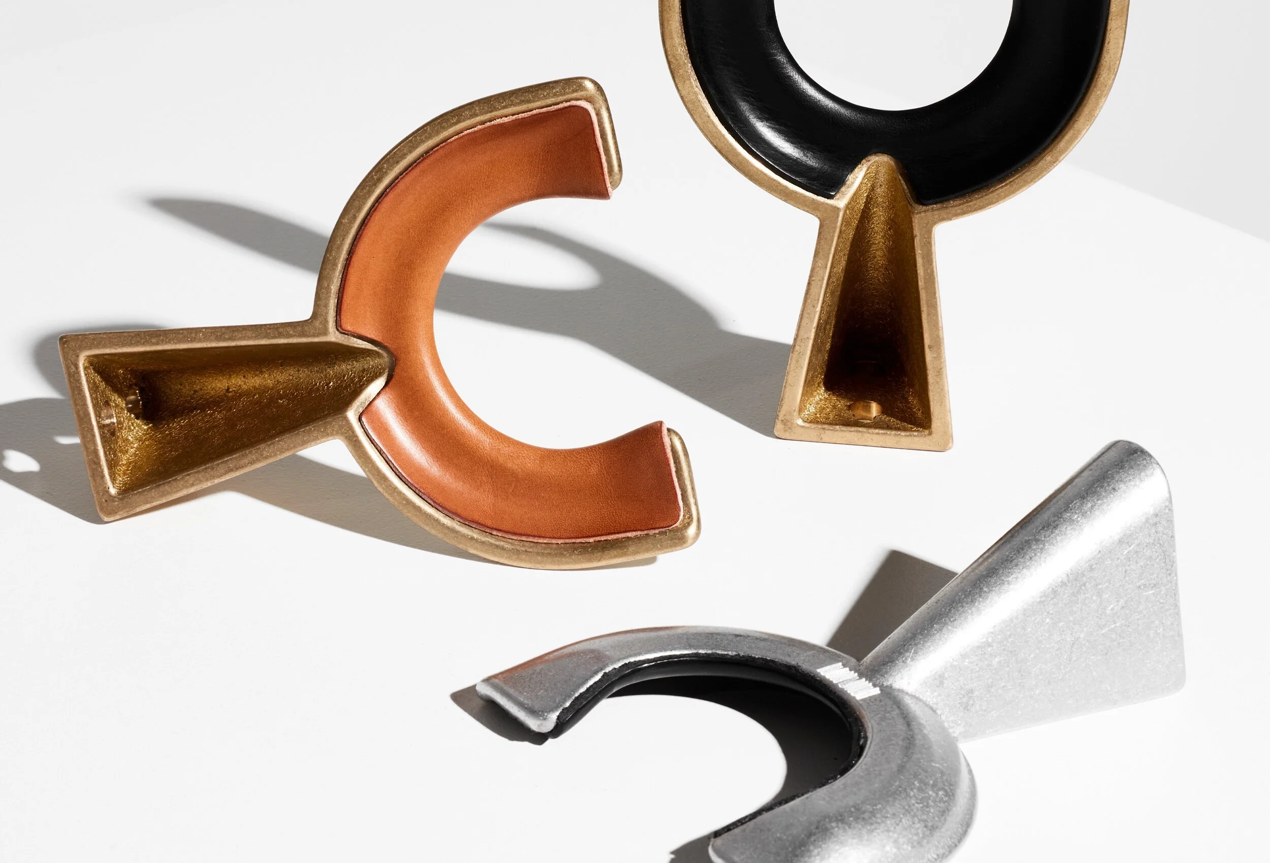 Verts experimentative process, in collaboration with Judit Varga from Birdsall Leather allowed new opportunities to unfold. Initial material testing using wire presented some limitations in large-scale manufacturing as well as the quality. In pivoting, brass casting was explored, ensuring the manufacturing process was controlled and reliable. This led to new ways of working with the leather in combination with the brass, as Verts knowledge of molding processes met Judit’s craftsmanship. In an effort to bond the leather seamlessly, jogs and patterns were developed. Inspiration was taken from those timeless and romantic objects we find in contemporary homes, such as brass vessels and pots, or the detailed stitching on leather wallets. These materials were also selected for their long-lasting, recyclability, high quality and ethical production, as well as their potential for new material applications in future, like vegan leathers.