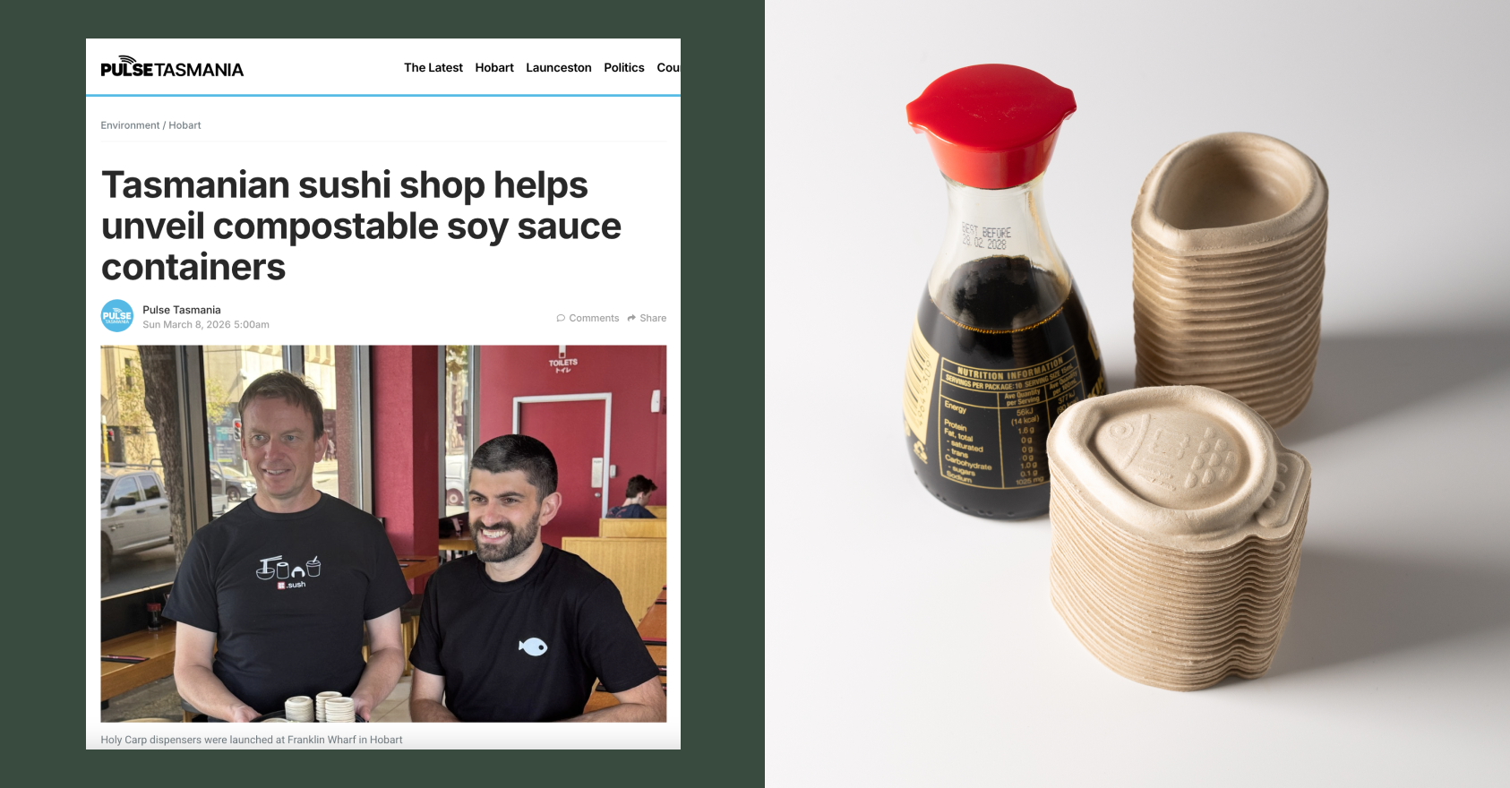 Holy Carp! with Heliograf is live. Made from natural plant pulp, Holy Carp is your local sushi shop’s alternative to the single-use plastic soy fish.
