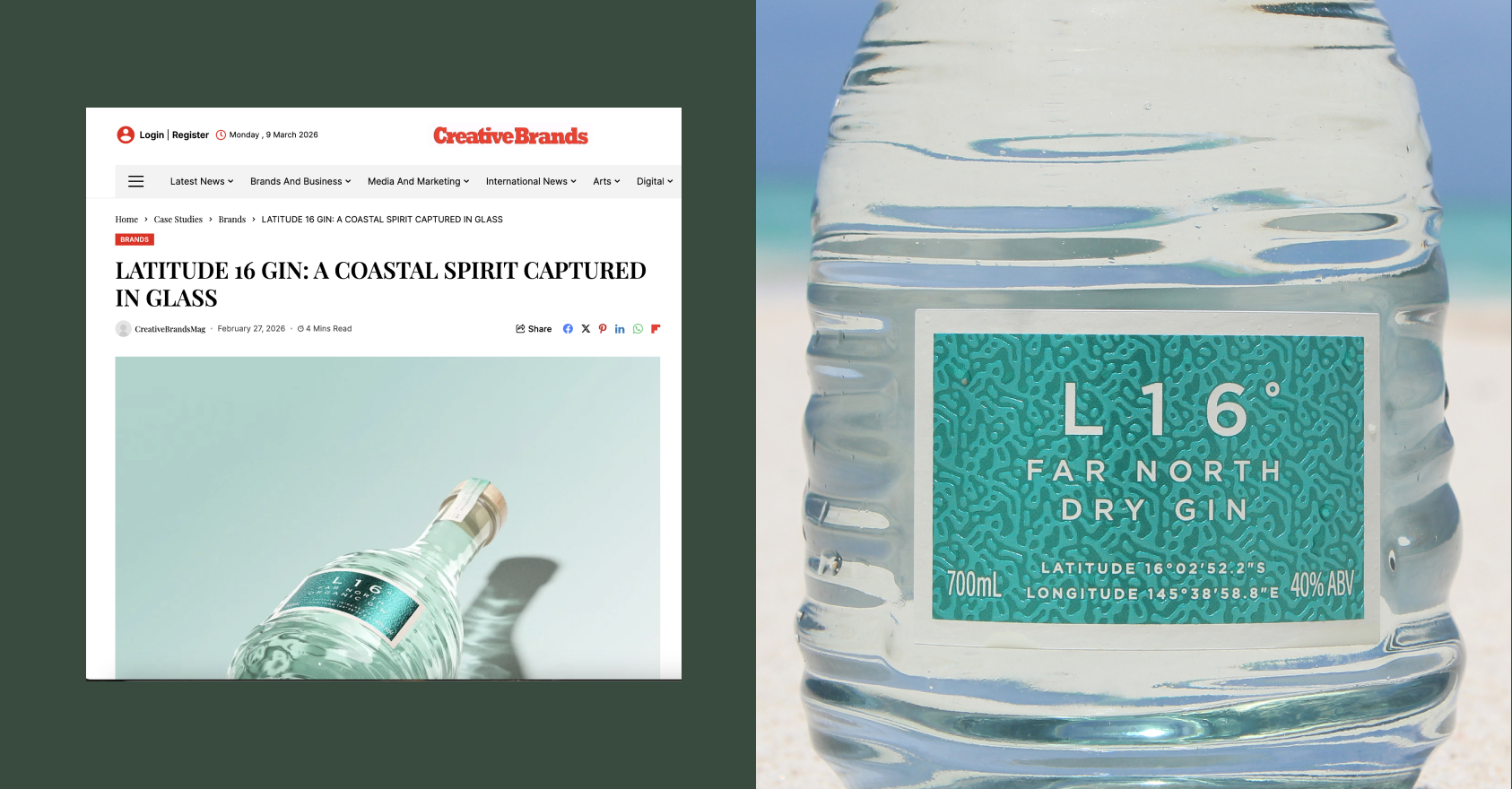 Great to see Latitude 16 Organic Gin featured by Creative Brands. Read more here.